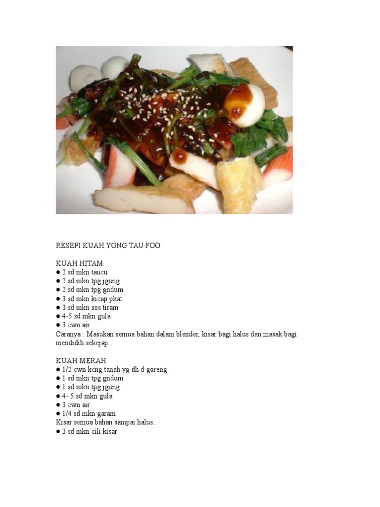 1 cawan kicap cair kicap lemak manis. Che Nom ni masih dalam mood rindu menu pasar malam jadi kali ni jom kita tengok resepi untuk Yong Tau Foo berkuah hitam dan merah yang pekat dan mempunyai gabungan pelbagai. Kalau real resepi yong tau fu Chinese style kebanyakan isi atau bebola ikan dibuat sendiri.